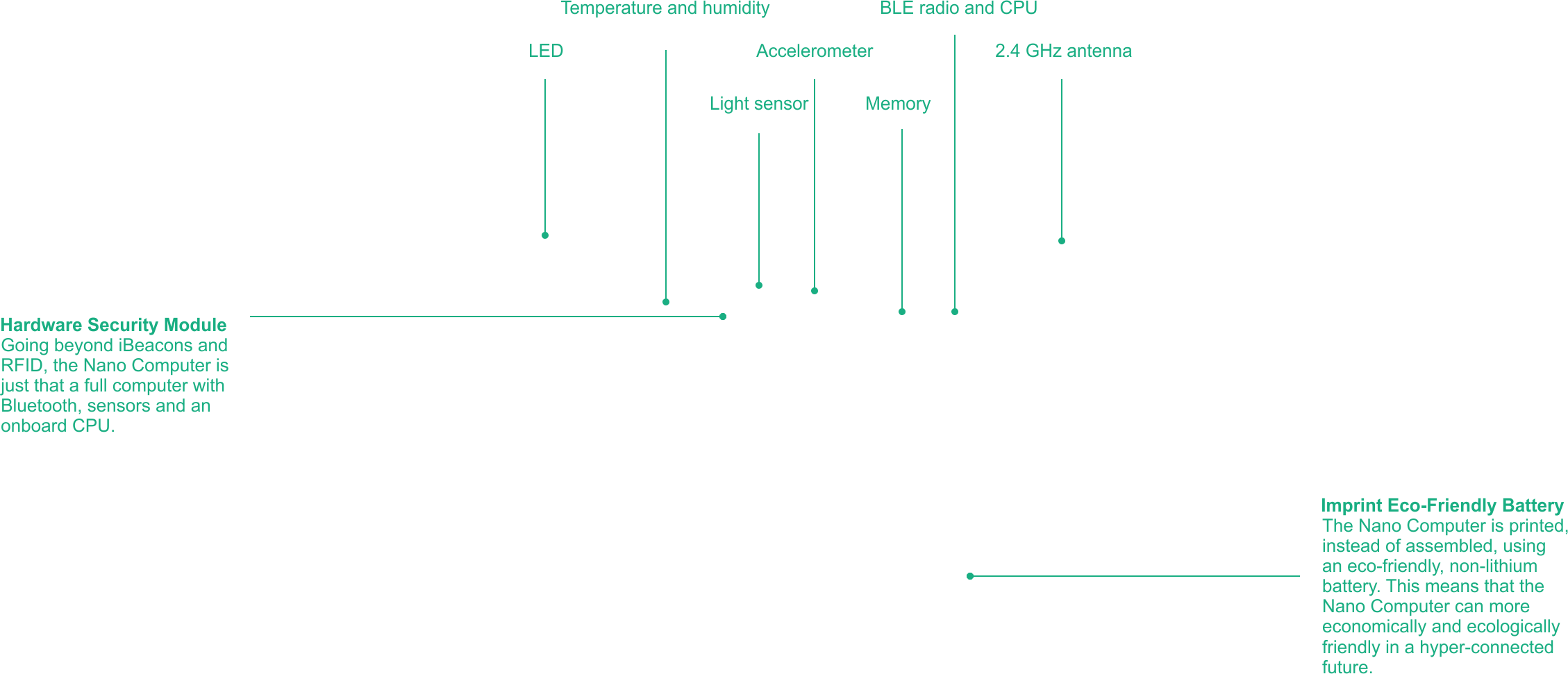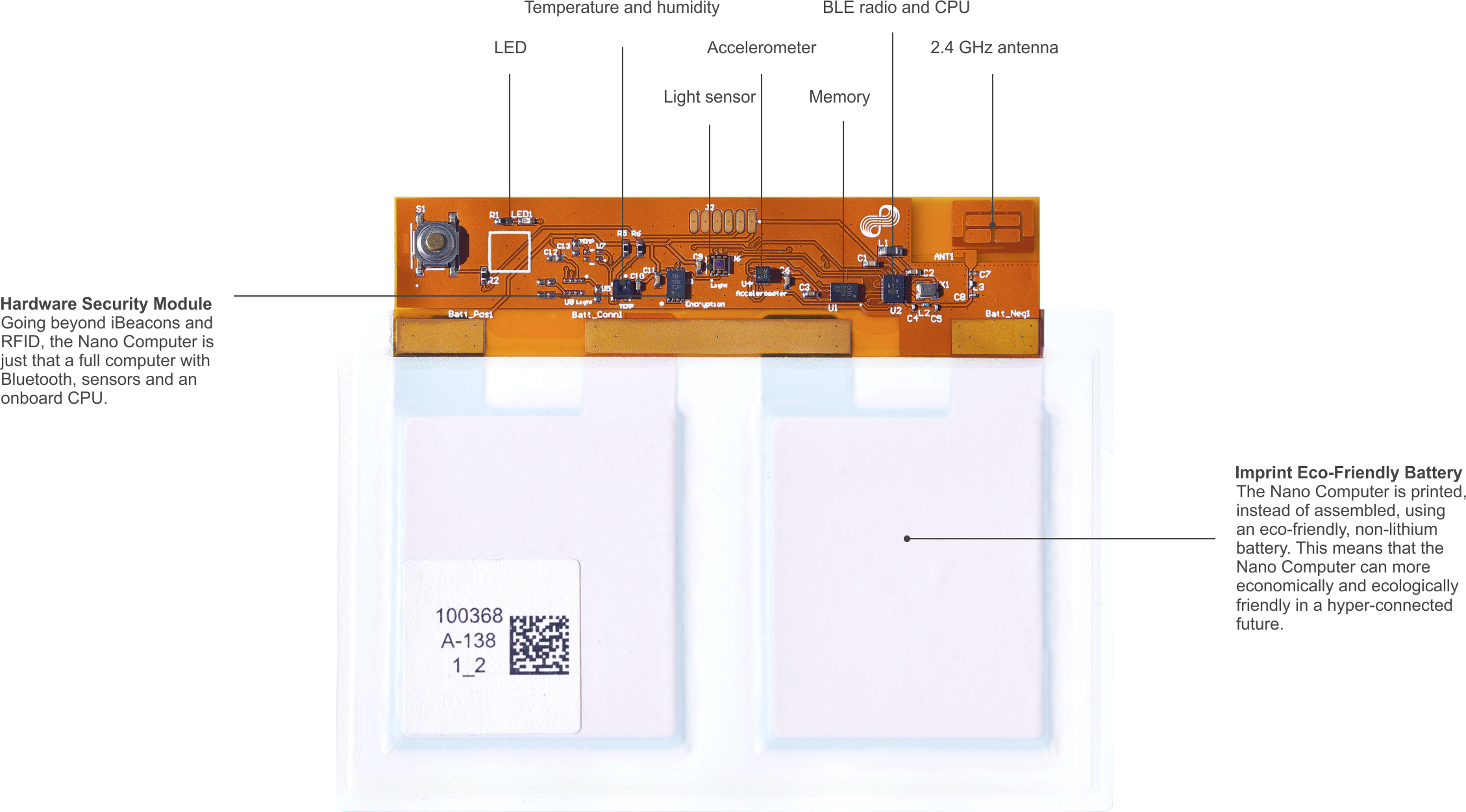 A Nano számítógépet az összeszerelés helyett az Imprint Energy által tervezett környezetbarát akkumulátorral nyomtatják.